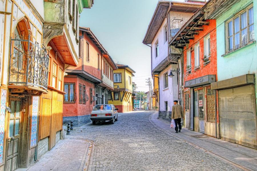 Odunpazarı'nın tarihi dokusunu yansıtan evlerinin bulunduğu sokaklarda yürüyüş